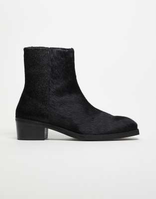 ASOS DESIGN chelsea boots in cow hair with cuban heel in black leather-Neutral