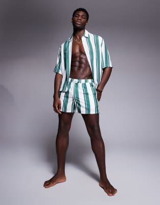 Shirts by ASOS DESIGN Part of a co-ord set Swim shorts sold separately Stripe design Spread collar Button placket Short sleeves Chest pockets Oversized fit