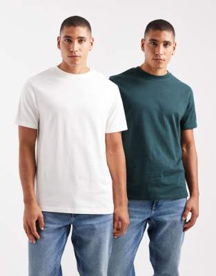 ASOS DESIGN Essentials 2 pack crew neck t-shirt in cream and dark green-Multi
