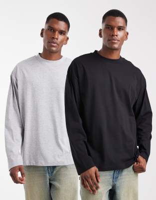 T-Shirts & Vests by ASOS DESIGN Pack of two Crew neck Long sleeves Drop shoulders Oversized fit