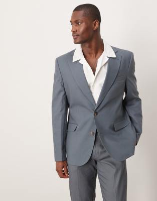 ASOS DESIGN linen blend slim suit jacket in blue