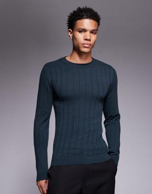 T-Shirts & Vests by ASOS DESIGN Crew neck Long sleeves Vertical ribbed knit pattern Ribbed trim Muscle fit