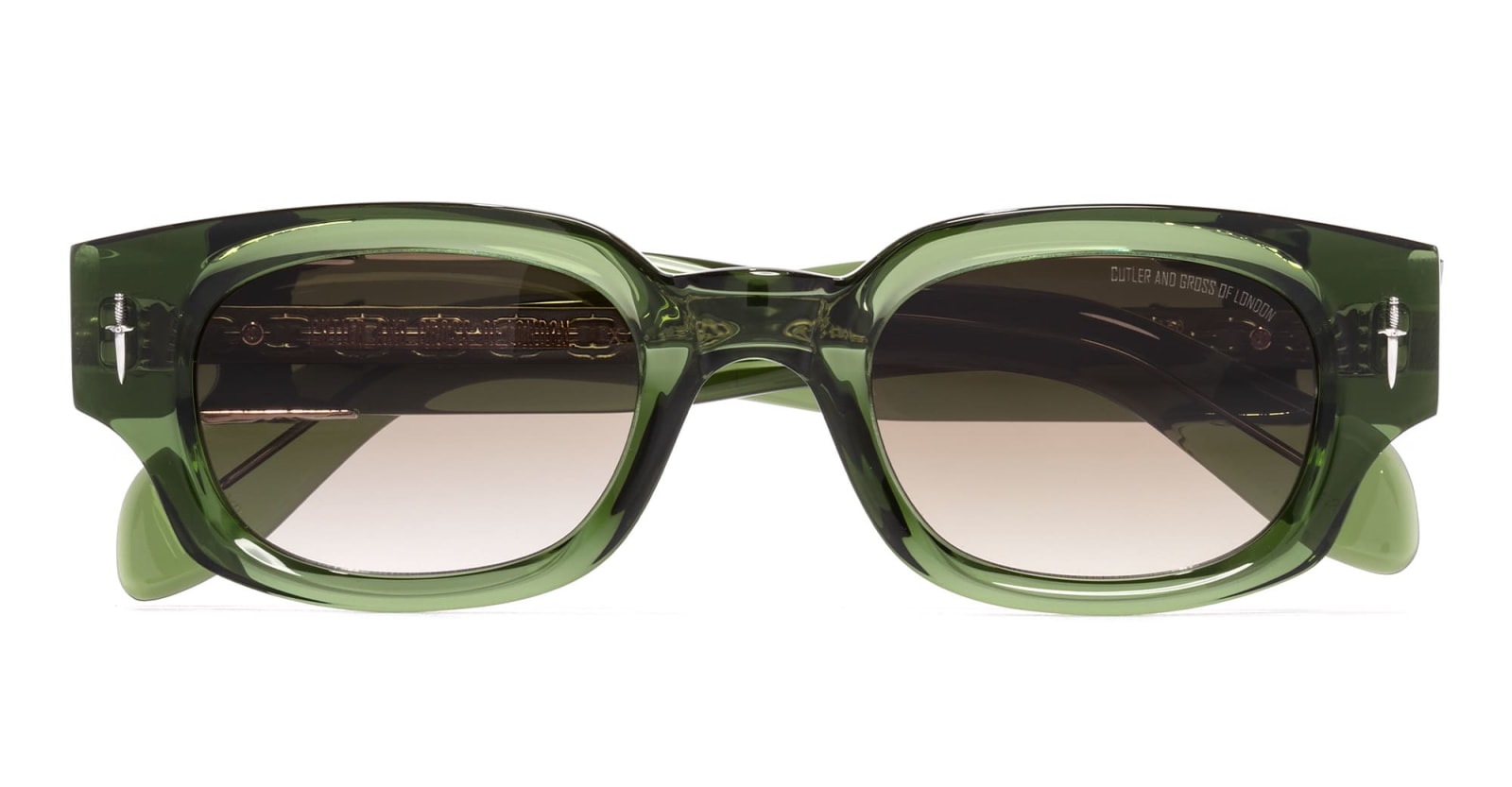 Brand: Cutler And GrossModel: The Great Frog – Soaring Eagle / Leaf GreenSKU: Gfsn-004-50-03Type: SunglassesColor: GreenMaterial: Acetate, SilverLens color: Gradient BrownSize: 50mm-23mm-150mmMade in Italy