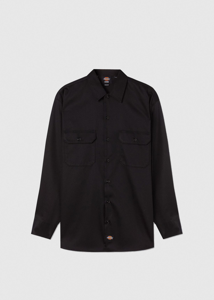Casual, understated styling meets functional and durable build with the Dickies Work Shirt. Made from a lightweight, recycled poly-cotton twill with a relaxed silhouette and straight hem. You’ll find two flapped chest pockets with classic button-up closure and classic Dickies logo.