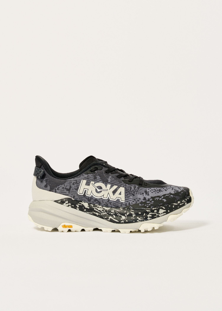 HOKA’s Men’s Speedgoat 6 trail running shoe combines plush cushioning with aggressive traction so you can run quickly and confidently along the trails. You can expect a super-responsive ride with minimal weight, thanks to the resilient and dynamic midsole compound. The woven textile upper is ultralight and breathable, and the dual-gusset tongue is plush and effectively keeps out trail debris. A foot-hugging internal chassis increases comfort further. Underfoot, the Vibram Megagrip outsole boasts a unique lug orientation inspired by the hoof of a goat for maximum grip on loose or wet ground.