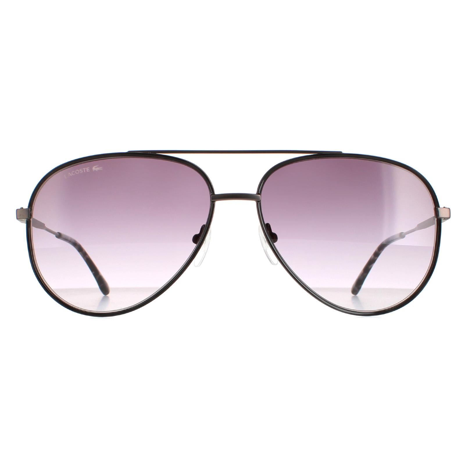 Lacoste Aviator Mens Matte Dark Grey Grey Gradient L247S L247S are a sleek aviator style crafted from lightweight metal. The silicone nose pads and plastic temple tips ensure all day comfort. Lacoste’s emblem features on the slender temples for brand authenticity.