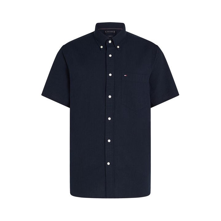 Tommy Hilfiger’s Seersucker Short-Sleeve Plain Shirt features a textured pattern and clean shape. The lightweight fabric offers breathability with a structured finish. Product Highlights Textured pattern for breathability Short-sleeve design with collared neckline Lightweight fabric with button closure