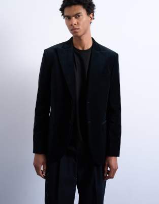 Suits by Topman In plush black velvet, this blazer has a notch collar, lightly padded shoulders, flap pockets and a two-button fastening.